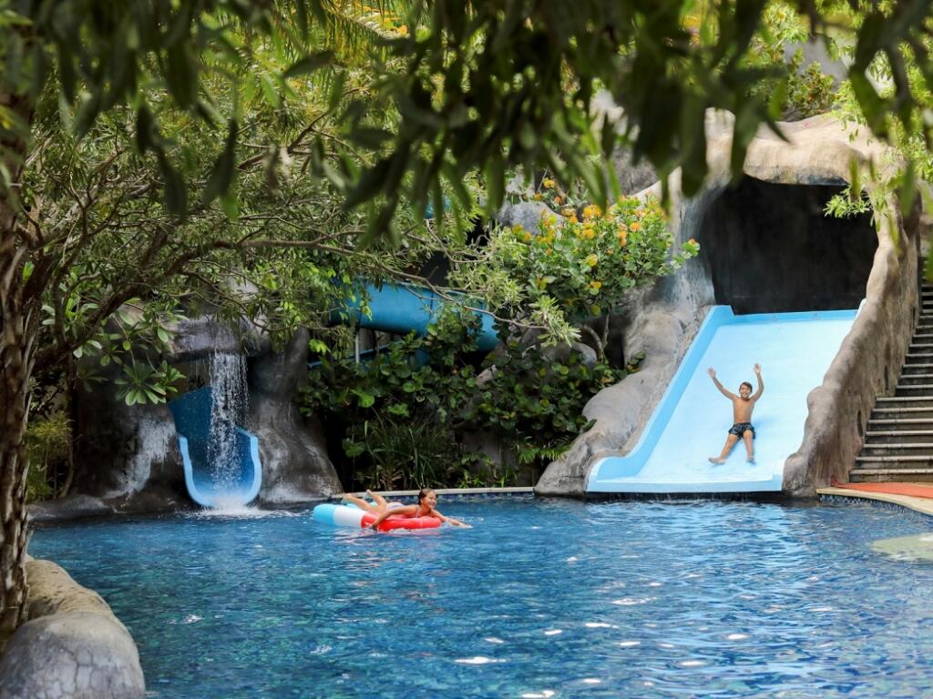 One of Kuta's most popular family friendly resorts, Bali Dynasty Resort offers guests a selection of family rooms and kids suites, as well as access to a kids club with waterslide, kids pool, outdoor play area and 'enchanted garden' themed club.