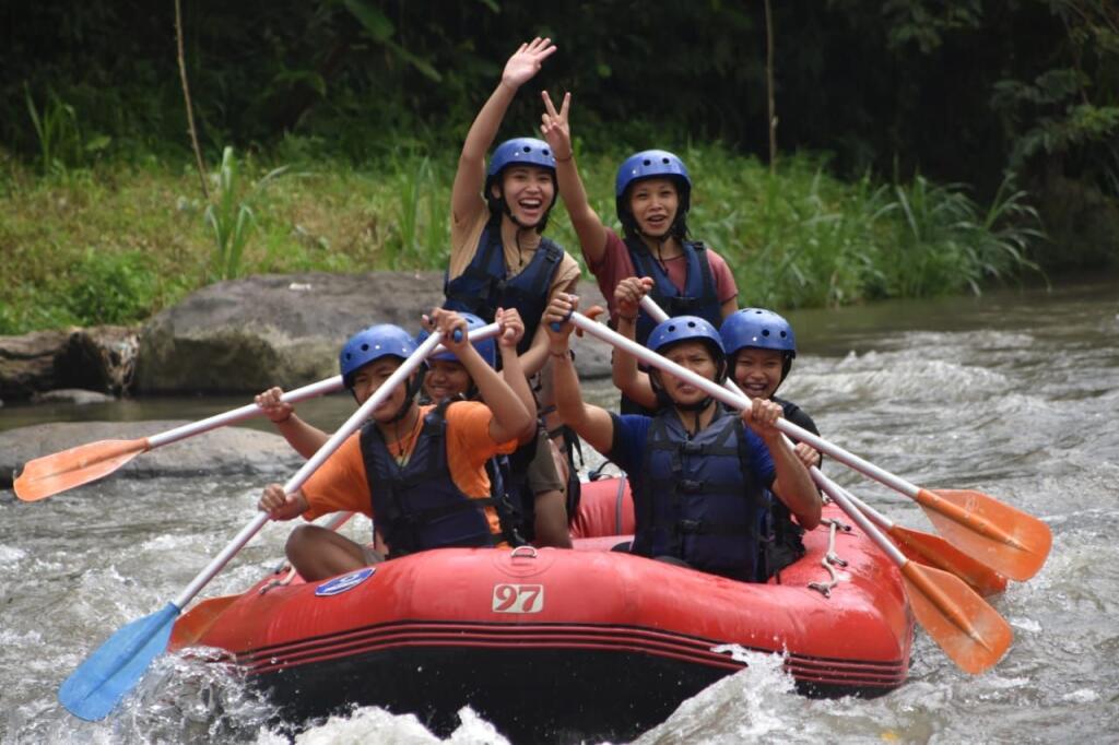 Start the day with whitewater rafting which provides a view of Ubud nature like no other. The 14 kilometres of rapids are not too wild so most adults and children are capable. If you need a rest any time, your guide takes over the paddling. Enjoy approximately 2 hours of rafting that are filled with twists, turns, bumps and splashes mixed in with humour from the guide. There are stops along the river to have a drink and take photos.