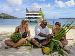 Day 1: Set sail this afternoon from Port Denarau to the outer Mamanucas. Enjoy afternoon tea before setting anchorage at Modriki Island, as seen in the Tom Hanks movie 'Cast Away'. As the sun sets this evening, enjoy a few cocktails and canapes on the Sun Deck before attending the Captain's Welcome dinner accompanied by the ship's crew, singing and dancing the night away.