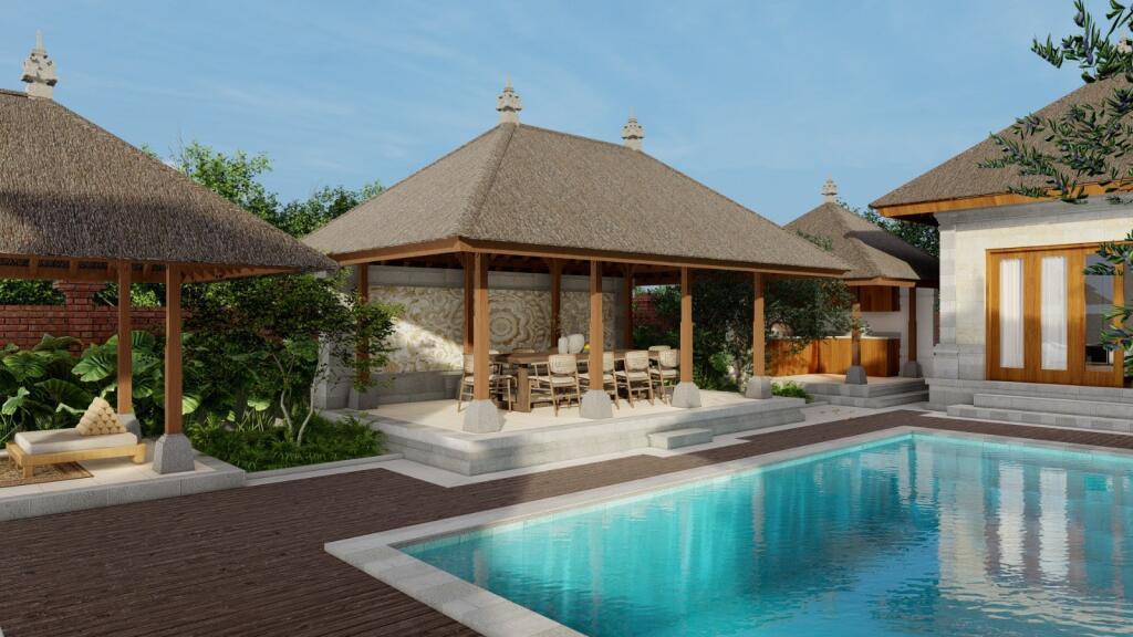 This magnificent villa features a large private pool which is central in the courtyard. The three spacious bedrooms and three elegant bathrooms surround the pool with a private living and dining area and beautiful tropical gardens. Room size is 600m². Bedding is 3 King Beds OR 2 King Beds and 2 Single Beds. Maximum room capacity is 7 Adults OR 6 Adults & 3 Children. Price on application
