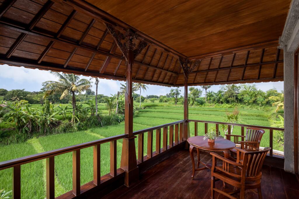 Two storey Balinese-style villa offering views over the rice fields or valley. Room size is 123m². Bedding is 1 Double Bed + 2 Single Beds. Maximum room capacity is 6 Adults & Children.
