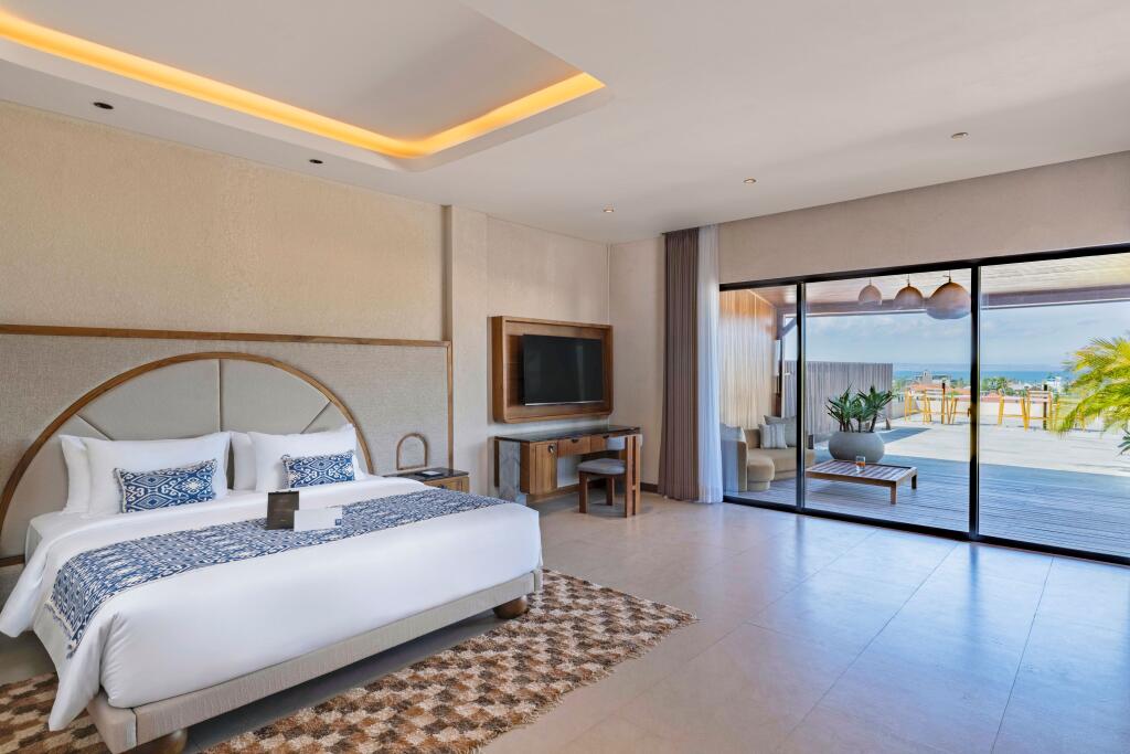 Enjoy breath taking vistas from the private terrace with sweeping view of Berawa and the ocean. These stunning suites feature a living room, 3 separate bedrooms and 3 bathrooms with a bath. Bedding is 2 King Beds + 1 Queen Bed. Room size 463 sqm. Maximum room capacity is 6 Adults + 3 Children. *Price on Application.