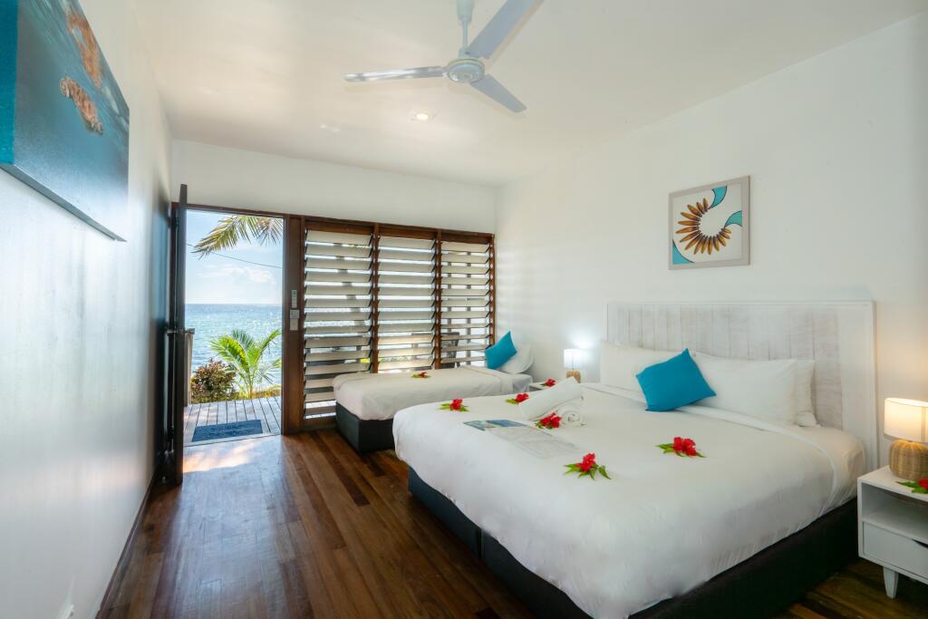 Located steps away from the beach. The modern spacious beachfront rooms offer beachfront views from a private deck. Bedding is 1 King Bed + 1 Single Bed. Maximum room capacity is 3 Adults & Children.