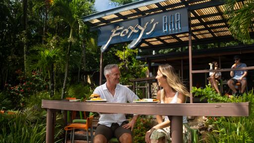 Fitzroy Island Resort has two dining venues for guests to choose from. Zephyr Restaurant is open for breakfast and dinner daily and features fresh, local, tropical cuisine. If you are after something more casual or interested in the nightly entertainment then Foxy's Bar is able to provide light snacks and refreshing drinks. Relax by the beach or dance the night away.