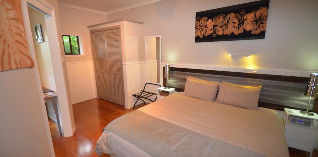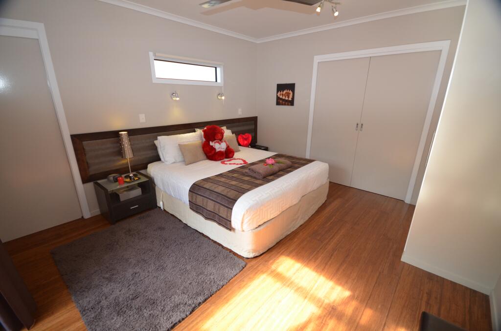 Features spa bath with 6 jets, separate walk in massage spa shower, modern kitchen with stainless steel appliances, separate bedroom and living room, large veranda and patio and private BBQ. Bedding is 1 King Bed OR 2 King Single Beds. Maximum room capacity is 2 Adults & Children.