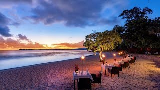 The onsite restaurant is set on the beach and features beautiful views across the island. Serving local and international cuisine created from the freshest local ingredients, diners can relax in the lounge areas, open veranda and terrace, under the stars, on the beach or with a pre-dinner drink at the bar. Dinner is also available in the romantic, candlelit setting of your villa deck.