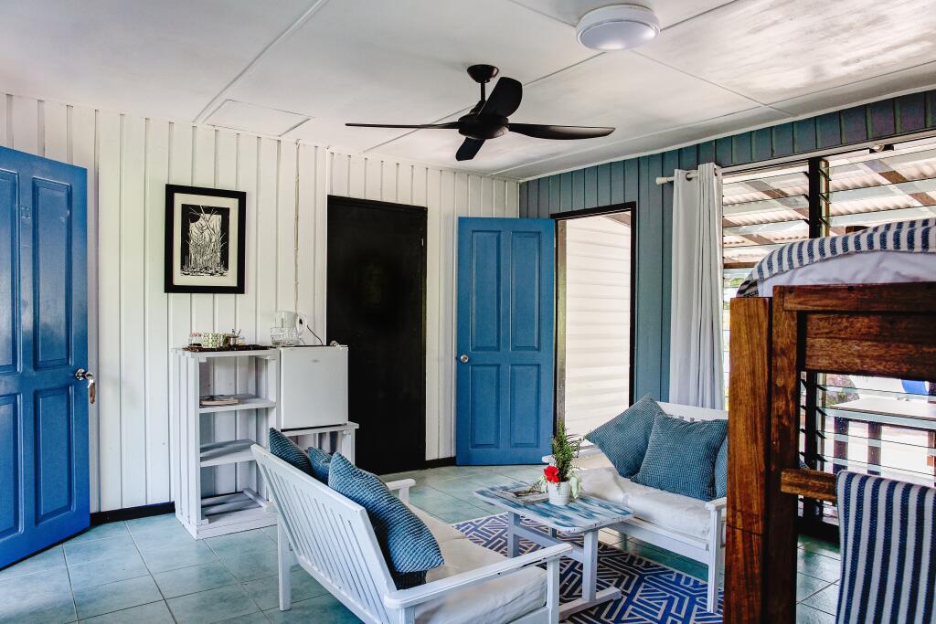 Located next to the pool with a large verandah and ocean views, this room has two separate bedrooms with air-conditioning in the main bedroom. Bedding is 1 Queen Bed + Bunk Beds. Maximum room capacity is 2 Adults & 3 Children.