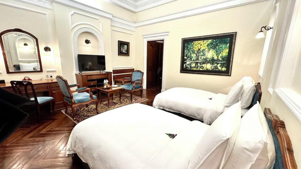 With it`s stunning French colonial architecture and luxurious interiors, Hotel Majestic Saigon is an icon of Ho Chi Minh City, celebrating it`s 100 year anniversary of their opening in 2025. As you enter through the lobby, you`ll notice stunning features of colourful stained-glass arched windows and extravagant chandeliers. Accommodation includes 175 deluxe rooms and suites with elegant furnishings and warm colour pallets, offering views of the city, pool or Saigon River. Each room features air conditioning, an LCD TV with national and international channels and turndown service. The spacious suites also feature a separate living area and separate bedroom.