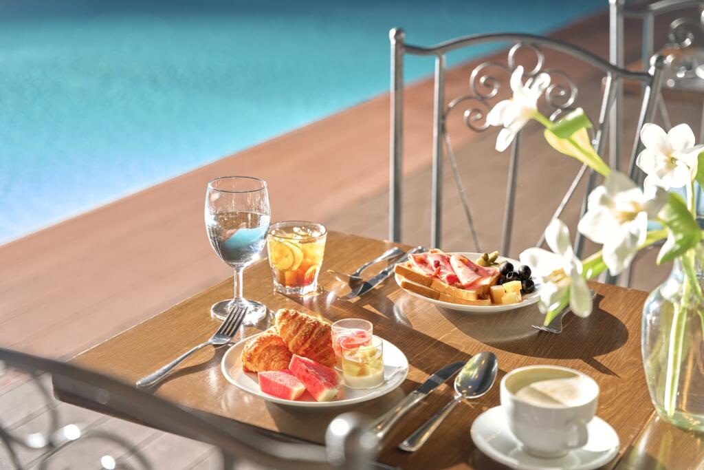 Breakfast Lounge: Located beside the pool with indoor and outdoor seating.