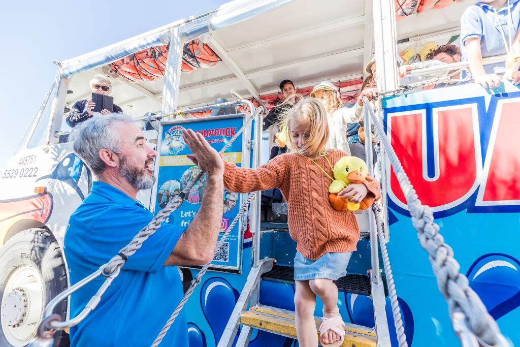 Experience this unique one-hour family-friendly tour through Mooloolaba on the Sunshine Coast with Aquaduck. Including commentary, tour along Mooloolaba Beach, the Esplanade and Sunshine Strip with a cruise through the canals and waterways. Great for all ages, the Aquaduck transforms from a road vehicle to a water cruiser, splashing into Mooloolah River. See local wildlife, Point Cartwright, the Fish Markets and fishing trawlers, Minyama and huge mansions. Kids can even sit on the Captain's seat to drive the Aquaduck and receive an authentic Aquaduck Captain's Certificate.