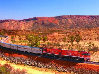 Departing from Adelaide, the train journeys through Alice Springs to Darwin, traversing one of the world's most diverse and captivating landscapes over the course of three days. Along the journey, you'll encounter spinifex plains, shimmering salt pans, striking outback colour shifts, the MacDonnell Ranges, and the lush landscapes of the Top End. Just beyond Alice Springs in the heart of the Red Centre, you can also explore iconic natural landmarks such as Palm Valley, Uluru (Ayers Rock), Kata Tjuta (The Olgas), and Kings Canyon.