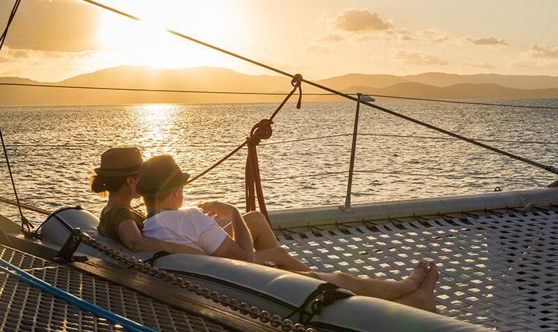 Suitable for guests 8 years or older, the leisurely Sunset Sail is the perfect way unwind with family and friends and together witness the unique Whitsundays scenery. Marvel at the stunning azure waters, surrounding islands and breathtaking colours that fill the sky at sunset.